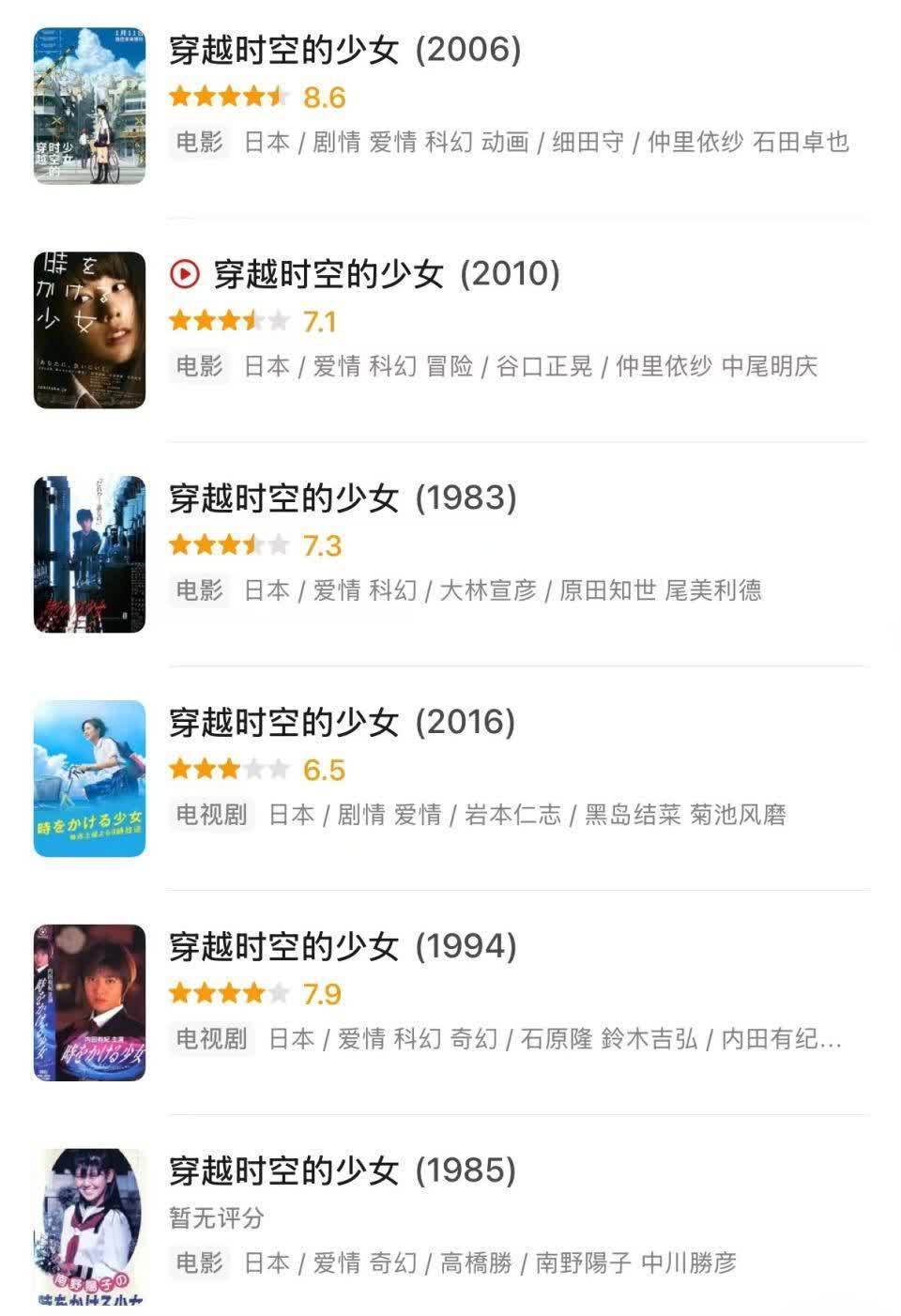 电影是2006年拍的,改编自同名短篇科幻演义,但本事线被安排在原著20年之后,女主角也从芳山和子造成了她的侄女绀野真琴。