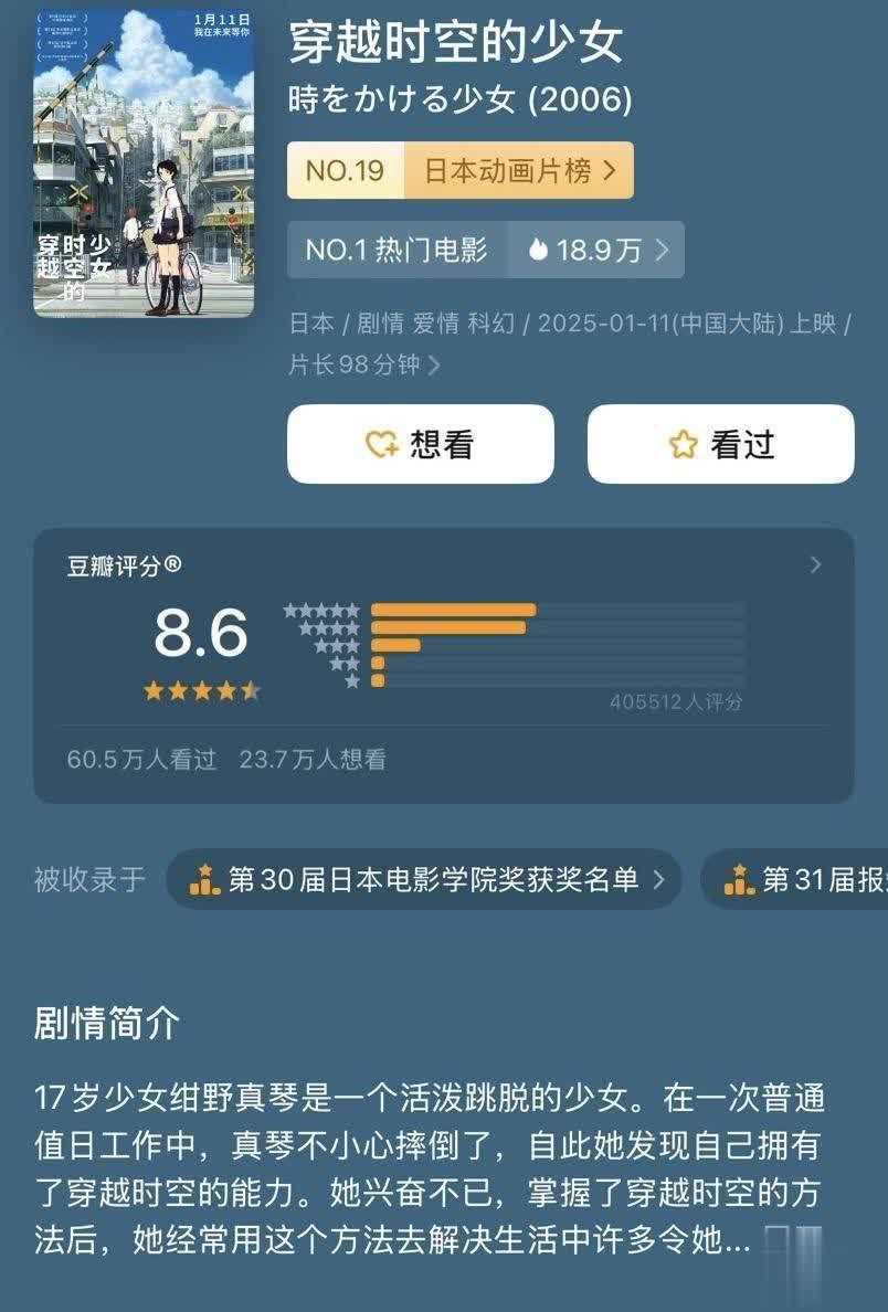 机缘赶巧之下,我看完毕这部《穿越时空的仙女》。