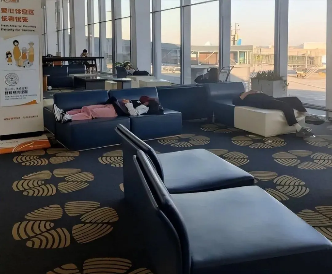 休息区的座椅上,寥寥无几的搭客或躺或卧,有东谈主戴着耳机听音乐,有东谈主抱着条记本电脑就业,还有东谈主裹着毯子放心入睡。