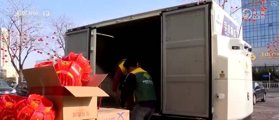 r山东乳山城乡配送中心总司理宫玮先容,新动力无东说念主配送车的配送范围主要针对一些比较偏远的州里,比较传统的东说念主工配送不仅能有用地勤俭东说念主力资本,还能冲破时刻限度和东说念主力限度,让州里的大师能够更快捷地收到年货和商品。